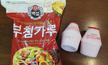 K-마트에서 산 부침가루와 문제의 통통이 딸기맛 우유
