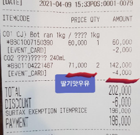 집에 와서 본격적으로 영수증을 확인했다. 통통한 딸기맛 우유 원래 한 개당 가격이 71,000동(약 3,450원). 그나마 할인 카드로 계산해 2,000동씩 할인받아 한 개당 69,000동(약 3,350원)에 산 셈이다. 조그마한 우유 한 개의 가격이 무려 3,350원? 아무리 네가 통통하다지만, 아무리 네가 비행기 타고 물 건너왔다지만 이건 너무 사악한 가격 아닌가? 살 순간에 가격표가 붙어 있었다면 절대 사지 않았을 가격이다. 갑자기 부침가루에 화살이 돌아갔다. '너를 사러 가지 않았다면 통통한 우유도 내 눈에 띄지 않았을 텐데......' 100원이라도 아끼려는 내 노력이 순간의 잘못된 선택으로 물거품이 된 기분이 들었다. 한국의 이마트몰에 들어가 보니 4개짜리 묶음에 대략 4,600원, 그럼 한 개당 계산하면 1,150원 꼴이다. 한국에서 살 때보다 무려 3배나 비싼 가격이다. 다음에는 더 이상 통통이 우유를 품을 수 없을 것 같단 생각이 들었다. 그래! 베트남에서 너와의 만남은 오늘이 마지막이다.