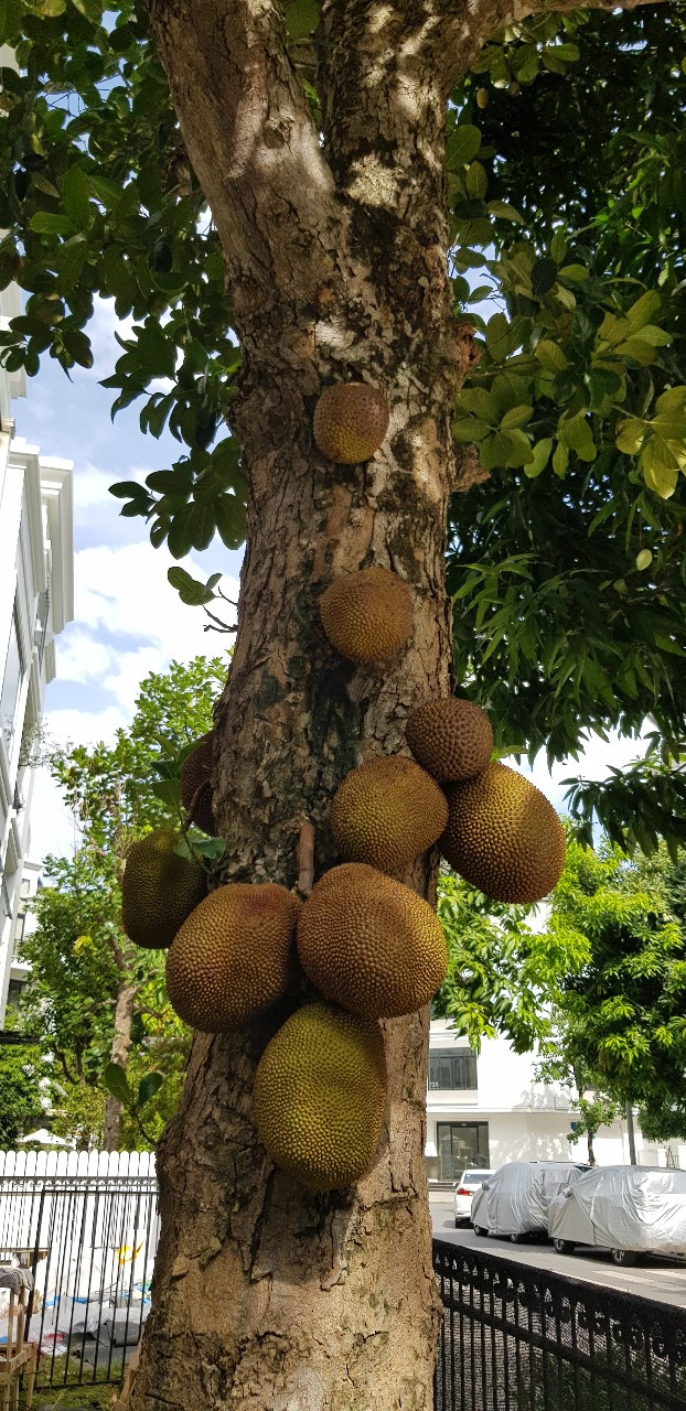 마지막으로 두리안이다. 마트에서 숱하게 봐왔었지만 나무에 주렁주렁 매달린 모습은 처음이다. 두리안하면 기억나는 일화가 있다. 십여 년 전에 친구와 태국 여행을 갔는데 그 호텔 방안에는 '방 안에서 두리안을 먹지 마시오'라는 문구가 적혀있었다. 알고 보니 한번 두리안 냄새가 방안에 물들면 잘 빠지지 않을 만큼 냄새가 지독해서다. 지금 살고 있는 아파트에서도 어느 집에서 두리안을 먹으면 그 냄새가 복도 전체를 타고 돌아 문 틈 사이로 들어온다. '무슨 이상한 냄새가 난다'하고 대문을 열어보면 이미 복도에는 두리안 냄새가 진동을 한다. 그만큼 냄새로 악명 높은 과일이지만 맛과 영양은 뛰어나다고. 왠지 나에게는 아직까지 진입장벽이 높은 과일이지만 맛이 좋다고 하니 한 번쯤 시도해보고 싶다.