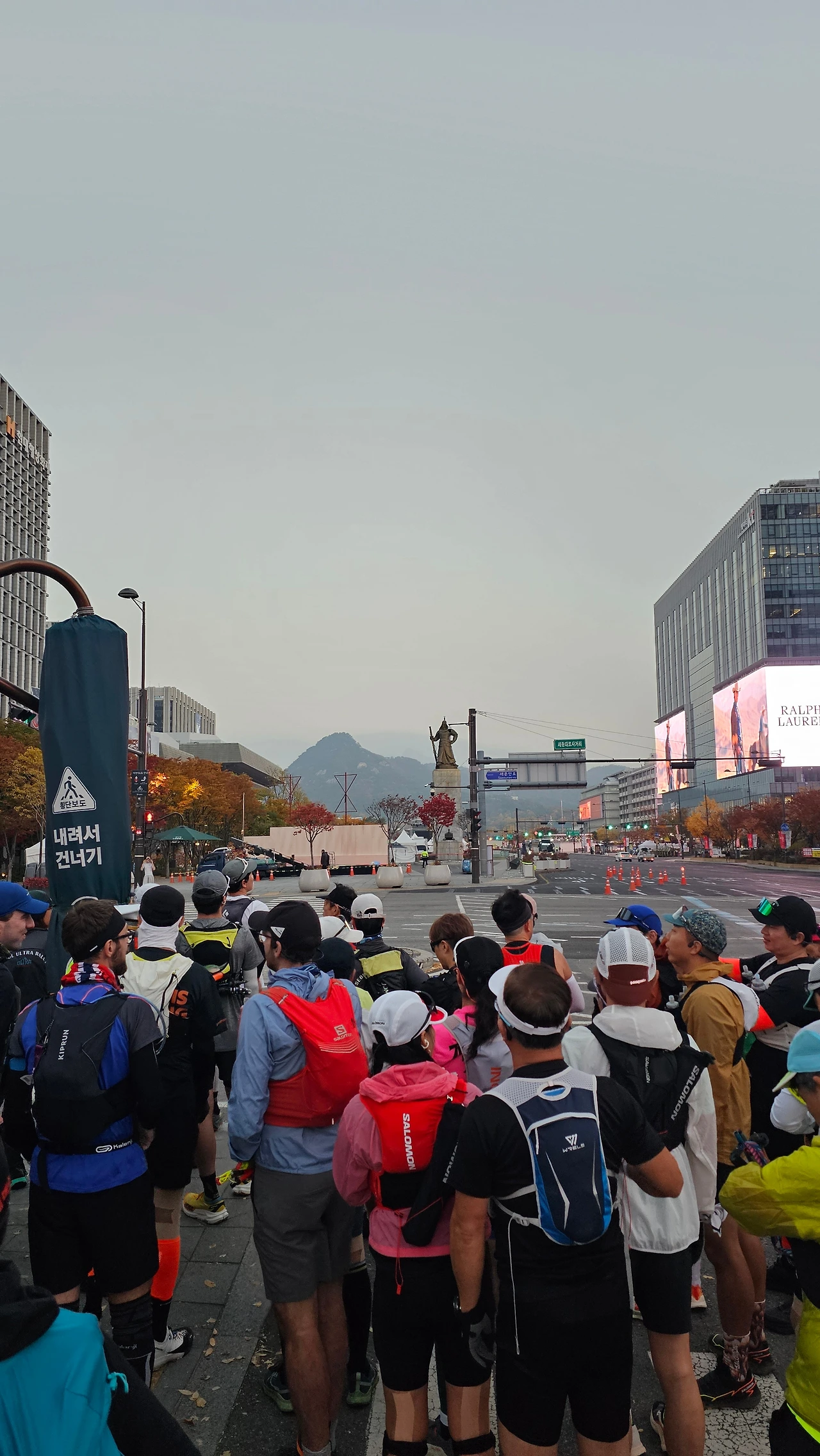 이제 마지막 CP 청운공원에 도착했다. 여기서는 기어서도 제한시간 안에 골인할 수 있는 지점이다. 내리막이라 수월했고 수많은 인파가 있는 광화문 이라 힘든 것도 어느새 잊어 버렸다.