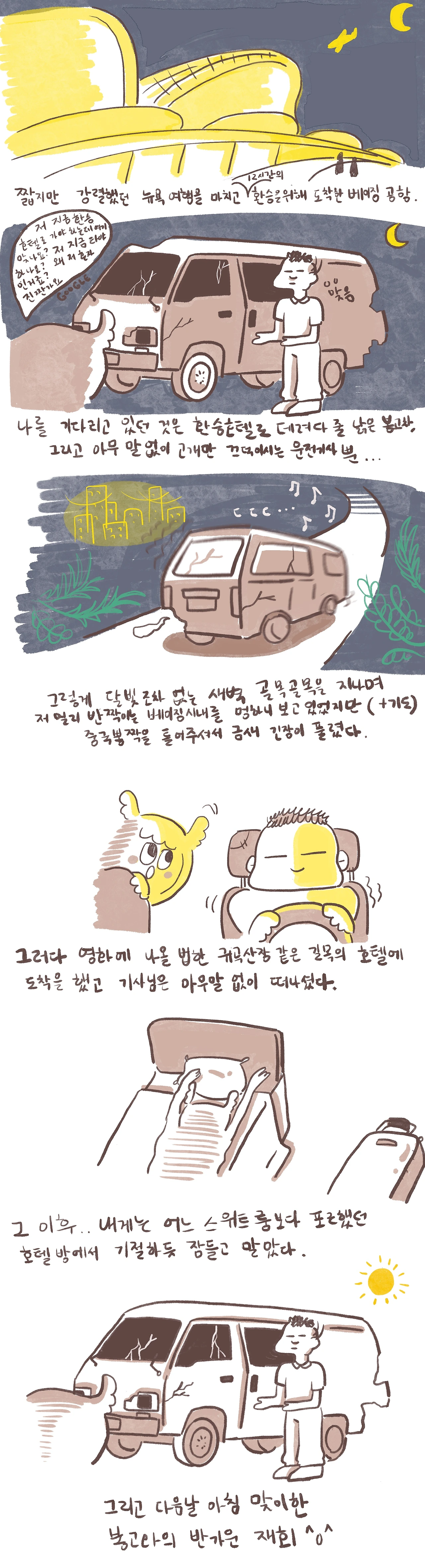 가다가 부서져도 놀랍지 않을 봉고차에 올랐을 때는 할 수 있는 모든 상상들이 떠올랐지만 묵묵하게 내 짐을 들어주시고 문도 열어주시는 매너를 보여주신 기사님 덕에 조금은 안심을 했다.