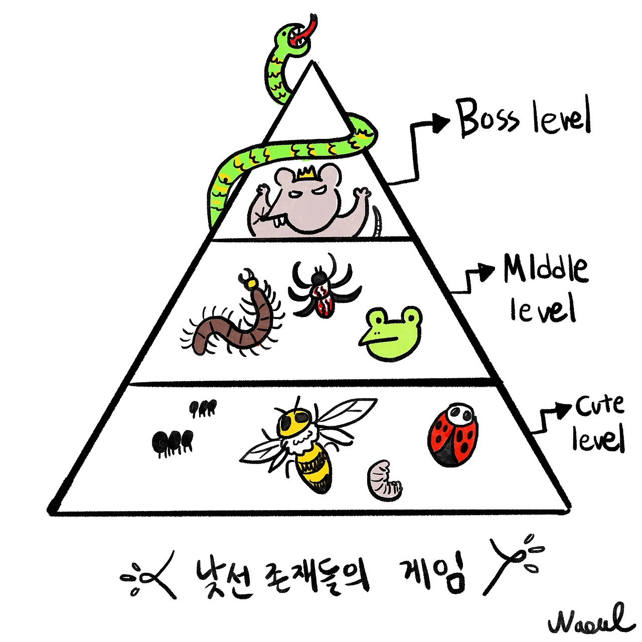 중간 레벨로 올라가면 개구리, 지네, 거미