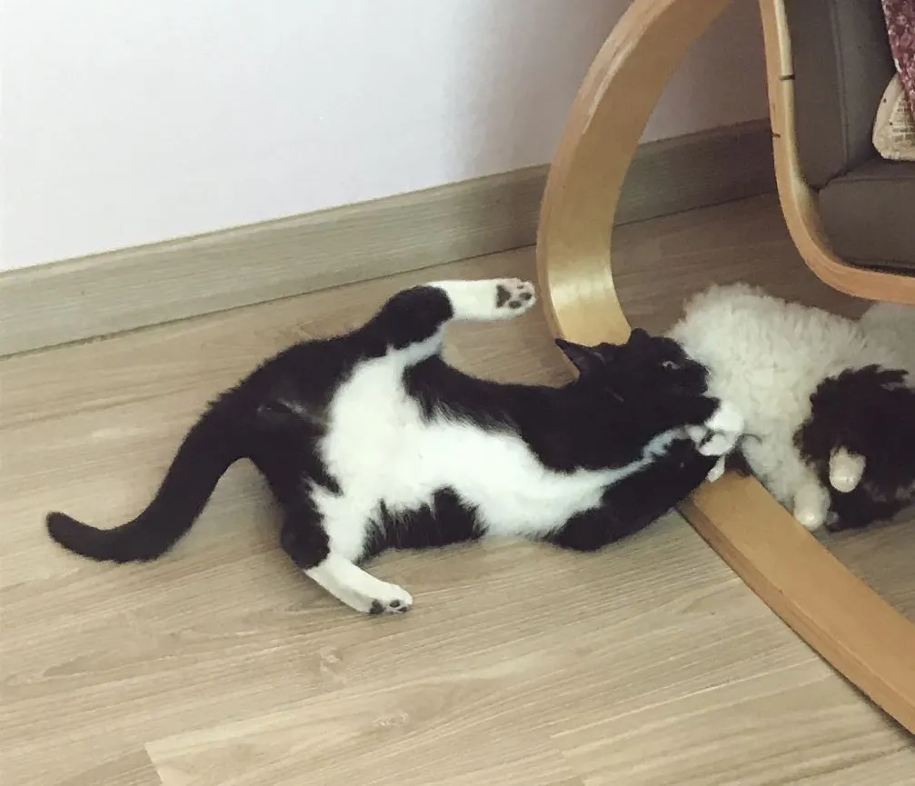 고양이와 한 공간에 있기만 해도 코가 간질간질, 눈이 따끔따끔했던 나인데 씩씩하게 뛰어다니는 턱시도 고양이와 그 분의 반려묘까지 합 두 마리의 고양이가 있는 곳에서