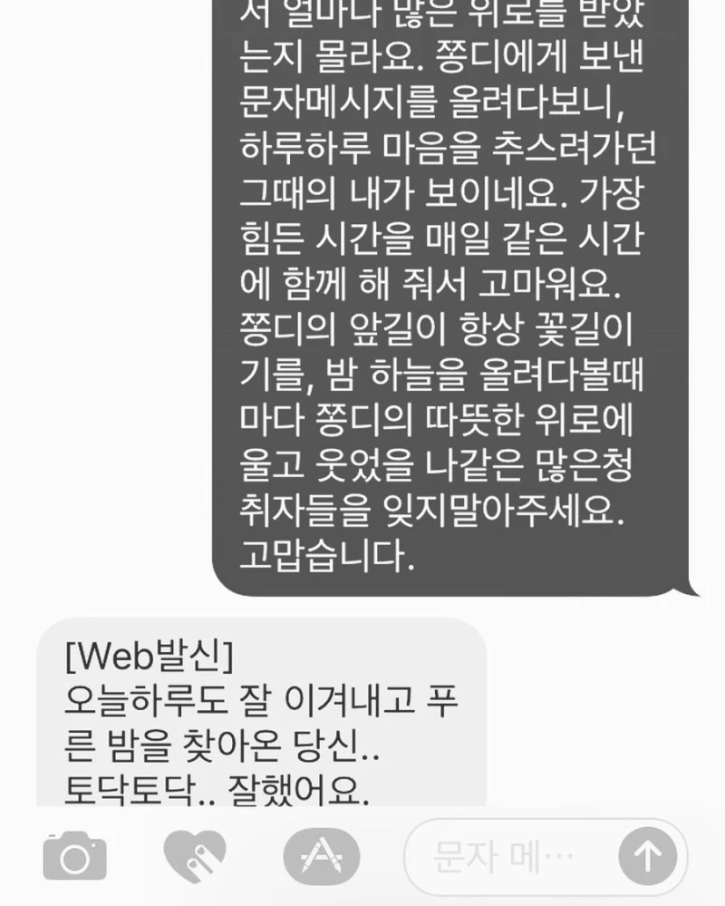 오랫동안 지켜온 자정의 라디오 하차를 결정하고 그 소식을 조심스레 알려왔던 어느 밤. 한 달간 이별을 받아들일 마음의 준비를 하자던 그 때가 갑자기. 있잖아, 하차 소식을 알던 그 날도 무척 놀랐지만 그 마지막을 알고 있다고 해서 마지막을 마주하는 것이 힘들지 않은 건 아니더라. 나는 그날 할 수만 있다면 그 새벽을 어디에 붙잡아두고 싶었으니까.