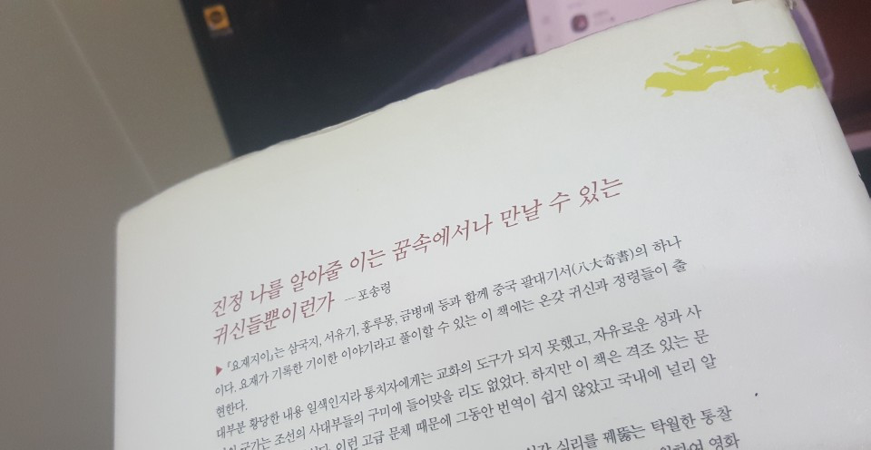 결혼하고 사이버대학 수강 중 '삼국유사' 독후감을 급히 써낼 일이 생겼었다. 도서관에서 당장 대여가 불가능했고, 주변에서도 빌릴 수 있는 지인이 없었다. 급한 대로 집 근처 중고책 서점으로 향했다. 삼국유사를 쉽게 구할 수 있었으나, 문제는 그 책 옆에 '요재지이'가 있었다는 점이다. 드디어 때가 온 것인가. 운명과도 같은 기분이었다. 정말 사기 싫었으나, 이미 책방을 나올 때는 삼국유사 외 1권이 손에 들려 있었다. 피하려 하면 할수록 더 강하게 다가오는 그런 운명은, 판매가 5,000원에서 내게 오는 것으로 확정되었다. 이렇게나 싼데도 안 사면, 책 속에 봉인된 온갖 귀신들이 그날 밤 꿈에 나타날 것 같았다. '20년 넘게 기다렸잖아, 어서 나를 데려가!'라고 책이 나를 노려보고 있었다. 거부할 수 없었다.