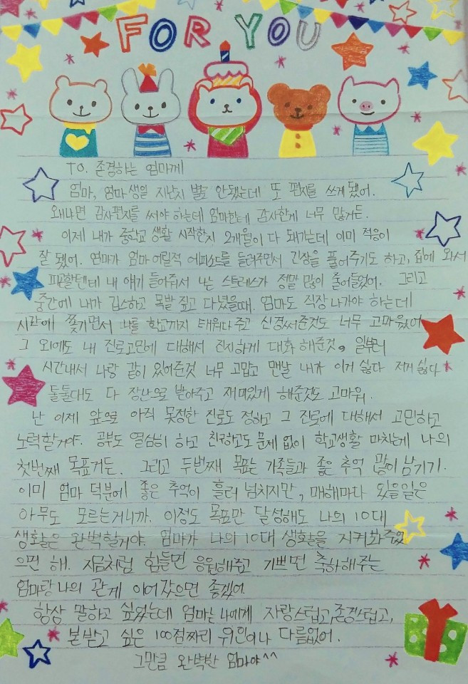 평소에도 부모님과 대화를 많이 하는 학생인 것 같다고, 공감능력이 굉장히 뛰어나다고 하셨다.