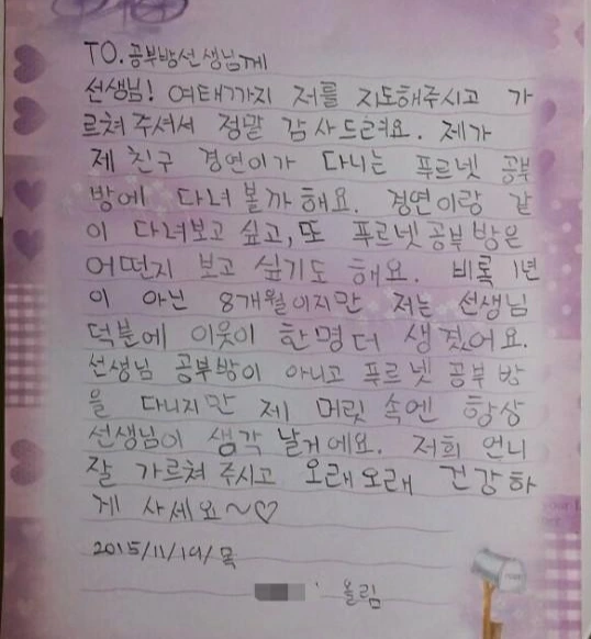 친구들은 중학교 학업을 준비하는 학원을 다니고 과외를 받는 등 분주했다.