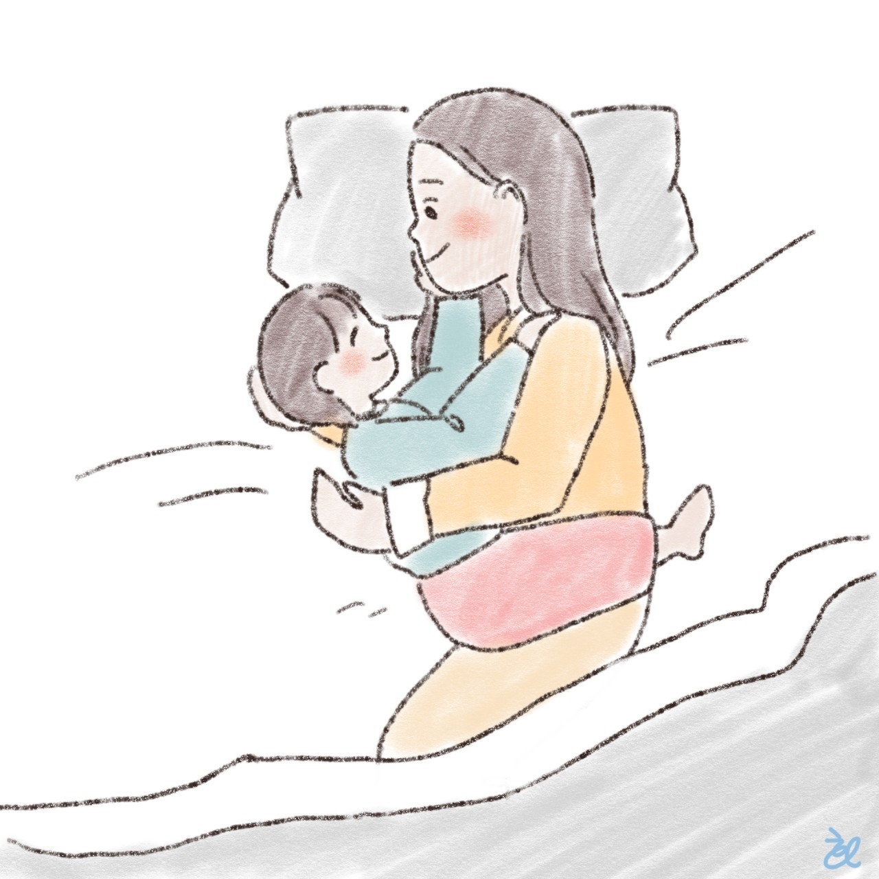 내가 재재와 같은 시간에 일어날 때는 재재에게 바로 “응 엄마 여기 있어” 하며, 품에 쏘옥 들어오는 재재를 꼬옥 안는다. 그러면 쌔근 쌔근 엄마의 호흡과 함께 조금 더 잠에 들기도 하고, 밍기적 밍기적 엄마와 재미난 소리도 내고 웃긴 표정도 서로 보여주다가 잠이 깨곤 한다.