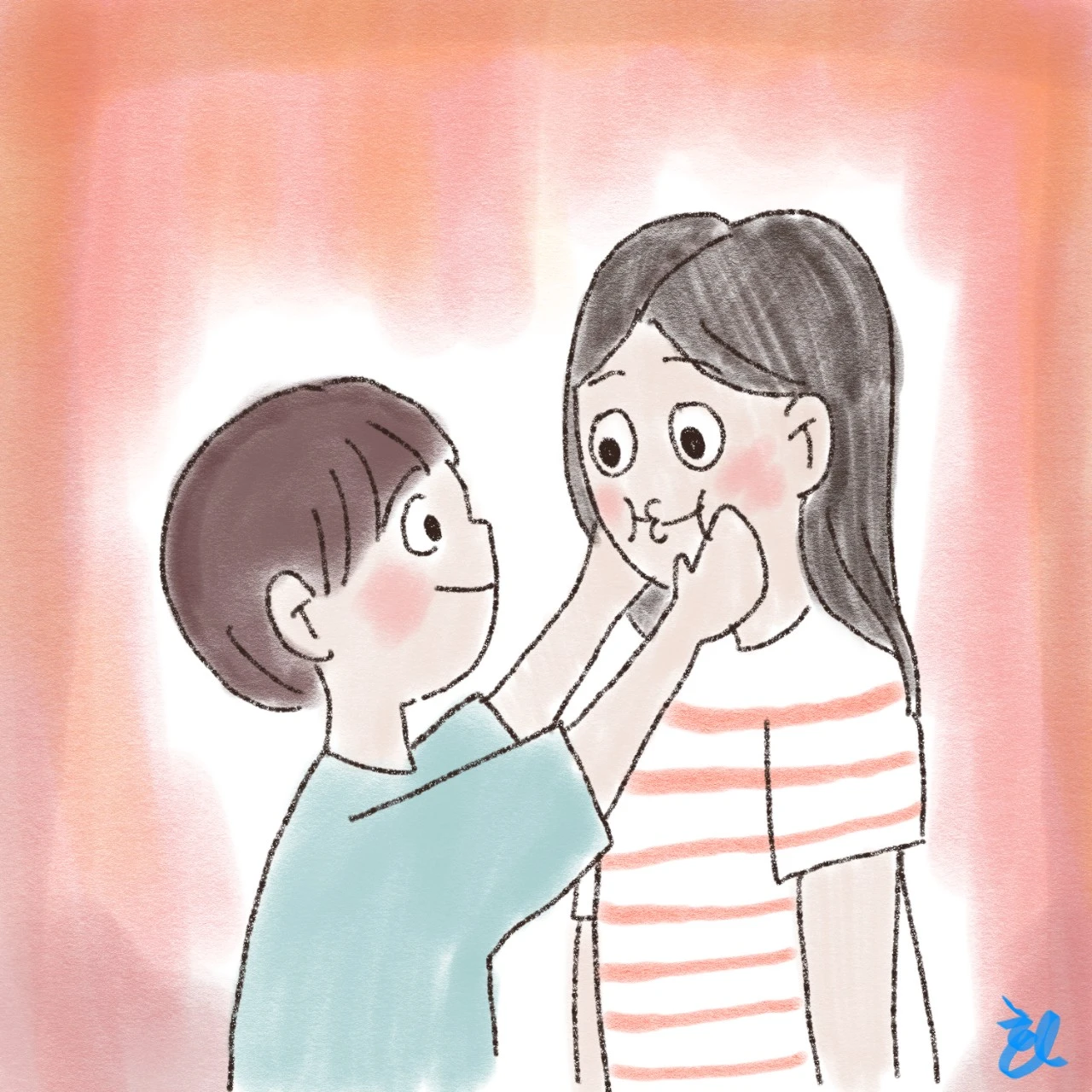 나는 재재에게서도 ‘새로운 재재’를 곧잘 발견하곤 하다. 그 한 예로, 내가 어린아이 같이 마냥 웃고 있으면 재재가 나에게 가까이 와 자기 두 손을 쫙 펴서 내 양쪽 뺨에 탁 대고 내 얼굴을 입술 쪽으로 꾸욱- 꾸욱- 눌러대는 것이다. 볼 살이 앞으로 모두 밀려 호빵맨처럼 뿍- 나오게 말이다. 그러다 내 두 뺨을 부드럽게 만질만질하기도 하고, “엄마 예쁘다” 하면서 두 손으로 비벼주기도 한다. 나보다 재재가 더 큰 사람 같다고 느낀다.