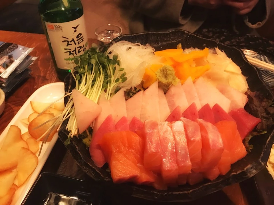 오늘의 안주는 무한으로 리필된다는 연어와 참치! 원래 사케를 도전할 생각으로 갔는데 사케보다는 소주가 어울릴 것 같은 분위기다. 연어란 음식 자체가 느끼해서 많이 먹을 수 있을까 싶었는데 금세 그릇이 비었다. 리필해주는 곳이 의례 그렇듯 두 번째 접시는 기대하지 않았는데 처음과 똑같은 퀄리티의 연어와 참치가 테이블에 놓였다.