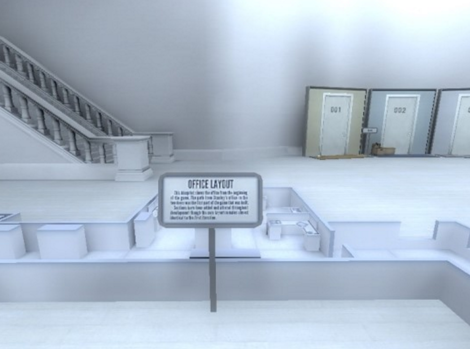박물관 엔딩은 정말 박물관처럼 <스탠리 패러블>에 관한 모든 것이 모여있는 박물관이 등장한다. 스탠리가 누비던 회사 건물의 구조도 뿐만 아니라 스탠리가 '선택'을 통해 맞았던 다양한 엔딩들 그리고 이 엔딩과 공간을 만들고 구성한 게임기획자들의 크레딧까지 벽면에 제시하면서 <스탠리 패러블> 게임에 관한 모든 것을 제작자의 관점에서 보여준다.