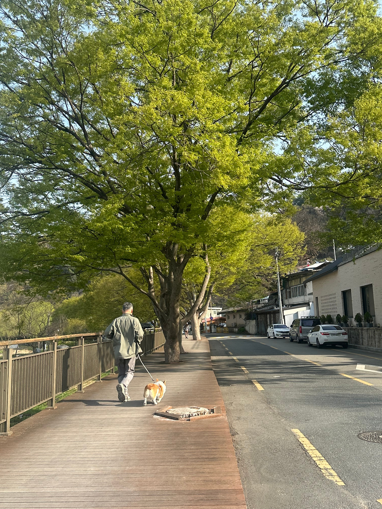 오전 7시 11분, 출발. 다른 날보다 천천히, 길게 걸었다. 걷기라기보다 산책에 가까운 속도. 슈가는 풀밭에 코를 박고 킁킁거리기를 반복했다. 선천적으로 호기심이 많은 웰시코기답게, 봄의 냄새 앞에서 가다 서다를 반복한다. 어떤 곳에서는 기어코 냄새를 다 맡고 가려고 버티기도 한다.
