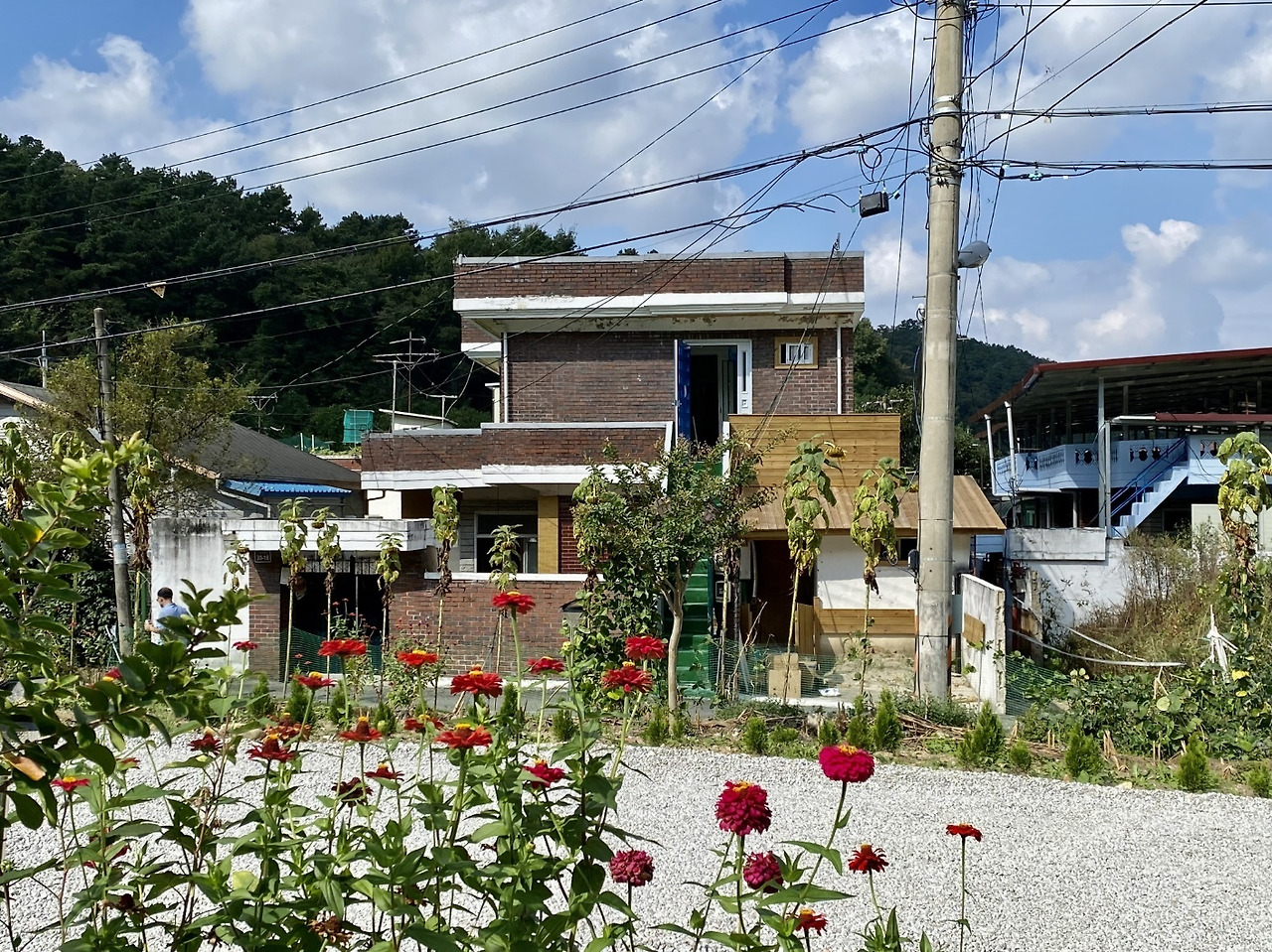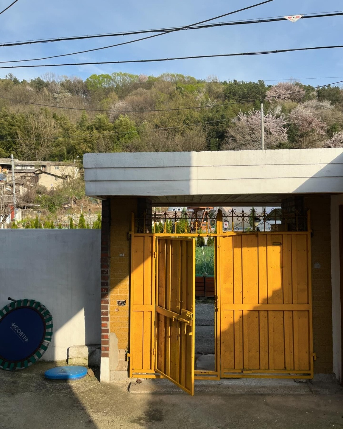 그냥 평범한 이층 주택이었다. 노란 대문이 있고, 문을 열고 들어가니, 마당과 화단과 창고가 있는.