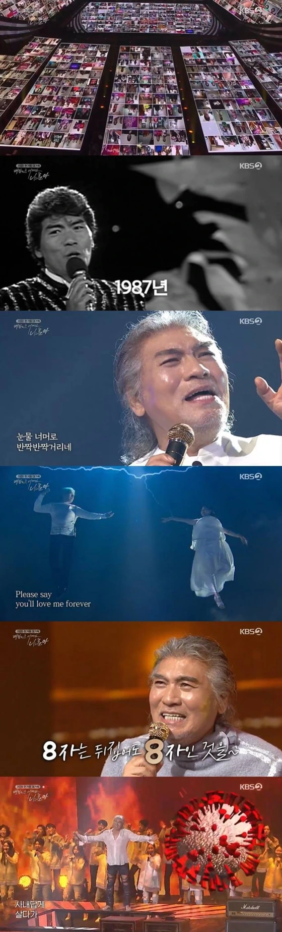 "가수는 꿈을 파는 사람이라고 생각한다. 꿈이 가슴에 고갈된 것 같아서 11년동안 여러분 곁을 떠나서 세계를 돌아다녔다. 그랬더니 '잠적했다'고 하고.'은둔생활한다'고 하고 별의별 소리를 하더라. 이제는 뇌경색에 말도 어눌하게 하고 걸음도 잘 못걷는다고 하니까. 내가 똑바로 걸어다니는 게 미안해 죽겠다"