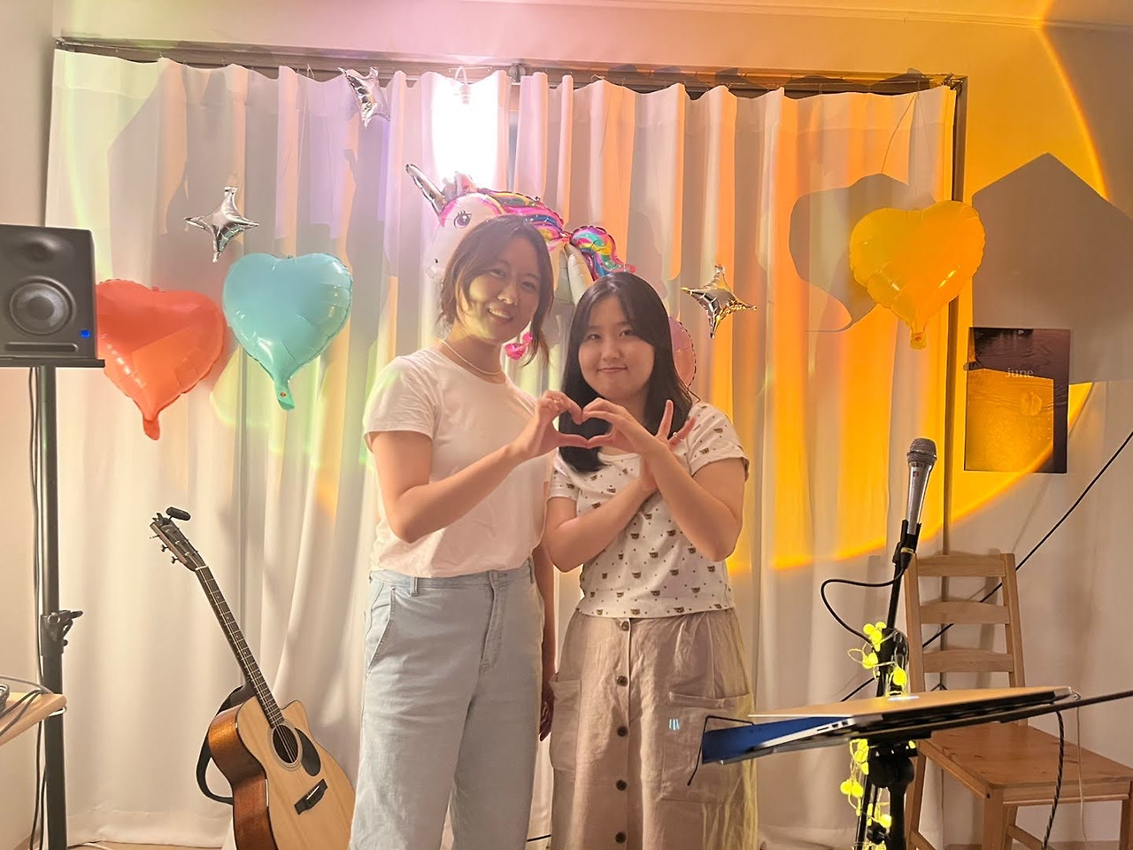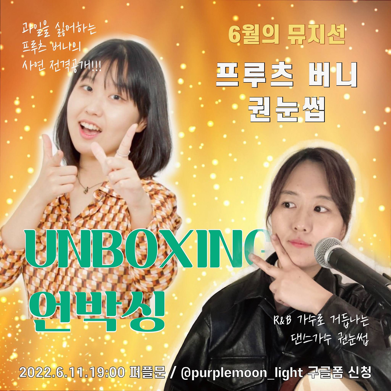 버니와 나는 공통점이 많았다. 유쾌한 무드를 좋아한다는 점, 음악과 관련된 모든 작업을 대부분 혼자서 한다는 점, 특히 오프라인 만큼이나 온라인에서 사람들과 활발히 소통한다는 점이 같았다. 이 점에 착안해 ‘유튜브 팬미팅’을 컨셉으로 공연을 꾸렸다. 아기자기한 풍선을 구입해 버니의 음악과 어울리게 무대를 꾸몄다. 공연 중간에 콩트를 넣어 서로를 인터뷰하고, 댄스 퍼포먼스도 준비했다. (관객들 반응은 즐거움과 경악이 섞인 것으로, 포크음악을 연주할 때와는 사뭇 다른 리액션이라 짜릿했다. 7월 언박싱에는 아예 댄스곡을 새로 지어서 무대에 올랐다.)