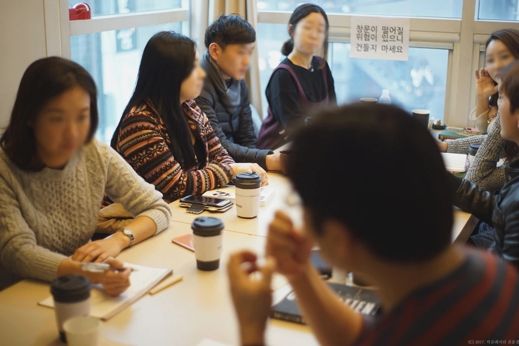 매번 듣는 질문에 매번 하는 대답을 하려 입을 여는데 갑자기 머릿속이 캄캄해졌다. 한 번 들어본 적도 없는 외국 어떤 나라에 불시착한 사람처럼 말문이 막혔다. 깜빡깜빡. 붕붕. 어느새 미지근해진 초콜렛 음료를 일단 마시는데 자주 모임에 와주셨던 Y님이 대신 답을 해주셨다. 그제야 나도 한 마디 덧붙였다. "계속 와주시는 분들이 계셔서요, 더 잘 하고 싶고 도움이 되고 싶고 그렇게 하다보니 여기까지 왔네요."