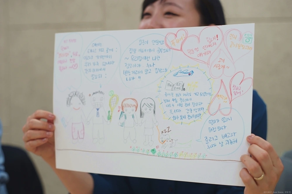 가까운 사람에겐 솔직한 내 마음을 표현하기가 더 어려운 것 같다. 감사와 사랑 같은 따듯한 감정은 더더욱. 동화책을 읽고 그림일기를 써보며 숨겨왔던 생각들을 마음껏 표현해 보았던 스물 세번째 모임. 네 명의 단촐한 모임이라 더욱 진솔한 이야기들이 오갈 수 있었다. 언젠가 나이보다 20년 이상 젊어 보이는 어느 분에게 동안의 비결을 들었다. 주름 없는 피부가 아니라 다양한 감정을 천진난만하게 표현할 수 있는 표정이 핵심이라고. 즐거우면 웃고, 슬프면 울고, 힘들면 짜증 부리고, 미우면 화내는 그런 작은 해소를 통해 얼굴과 마음의 건강을 유지할 수 있는거란 말에 고개를 끄덕끄덕. 그래도 돈이 좋긴 해!라며 해사하게 웃던 그녀. 나도 그렇게 늙고 싶어 그날부터 연습했다. 고여서 썩거나 쌓여서 터져버리기 전에 조금씩 밖으로 꺼내 놓는 연습을.