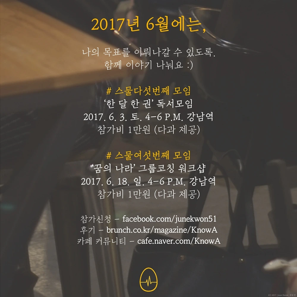 함께하실 분들은 언제나 환영입니다. 문의 또는 참가신청은 저의 페이스북메세지로 부탁드려요. :)