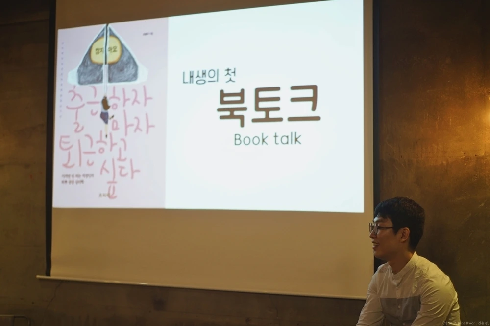 직장인으로서 살아가며 맘고생 할만한 상황들에 대해 어떤 원인이 있고 어떻게 대처하면 되는지 심리학적으로 쉽게 풀어준 책, 「출근하자마자 퇴근하고 싶다」. 제목부터 초공감이라 그런지 많은 분들이 관심을 가지고 참석해 주셨고 초롱초롱한 눈빛으로 강연을 들어주셔서 참 감사했다. 나는 지금 프리랜서로 일하고 있지만 직장 다닐 때 생각이 나기도 하고, '직장 생활'에 고통 받는 친구들 생각이 나기도 했다. 역시 사람은 배워야 돼! 전문성과 따듯한 마음을 가진 사람은 이렇게 큰 위로를 줄 수도 있구나, 싶어 내가 다 뿌듯했다.