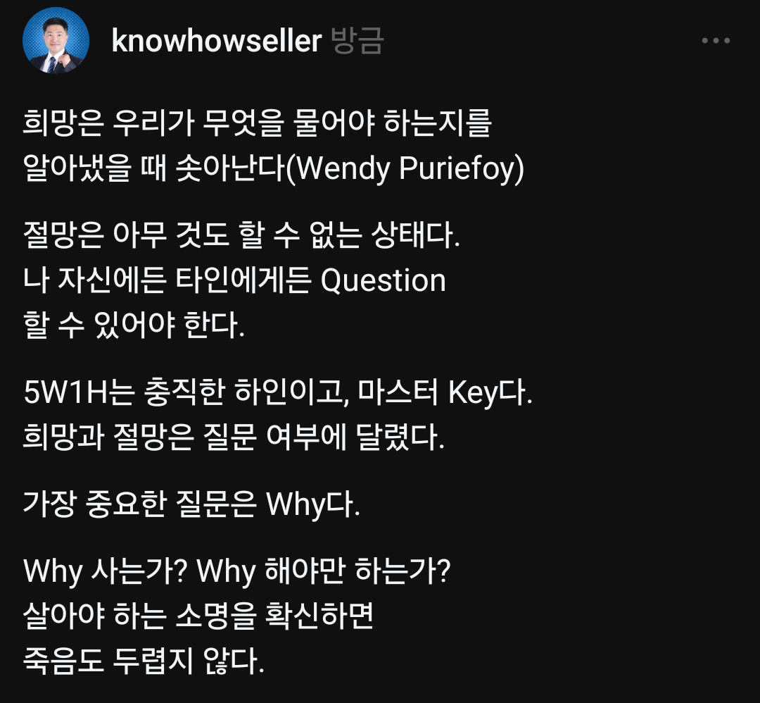 희망과 절망은 질문 여부에 달렸다.