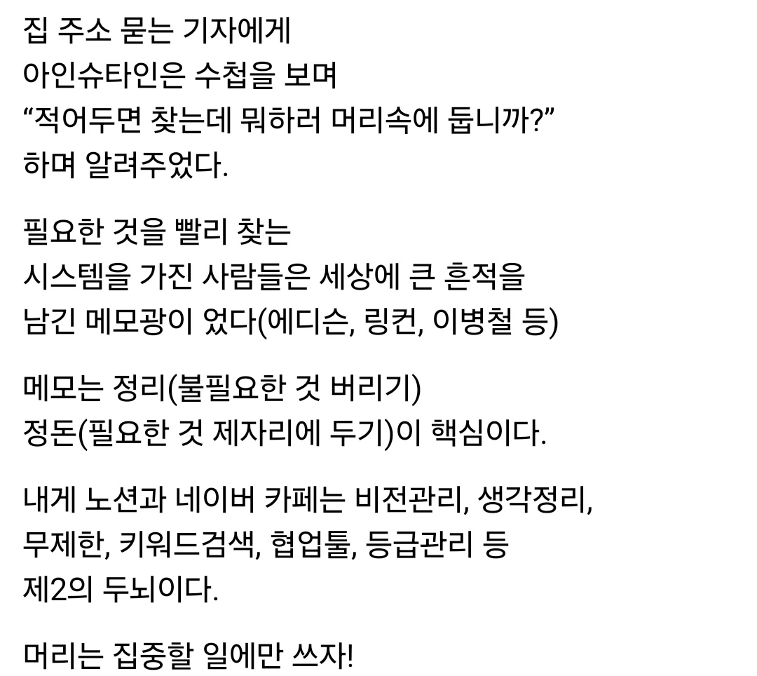 “적어두면 찾는데 뭐하러 머리속에 둡니까?”