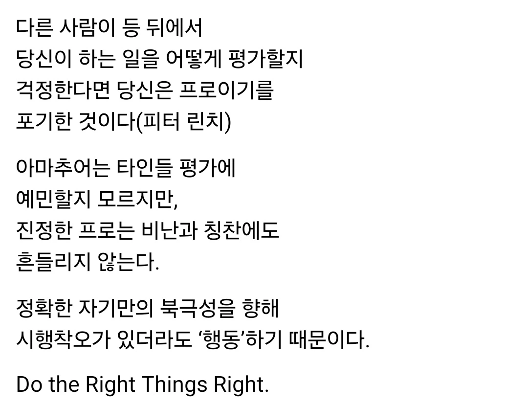 진정한 프로는 비난과 칭찬에도