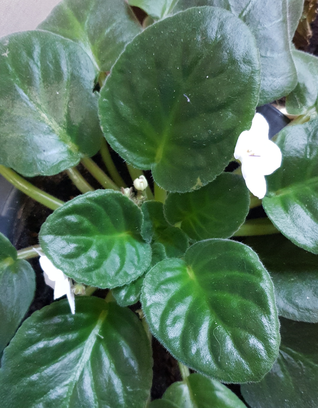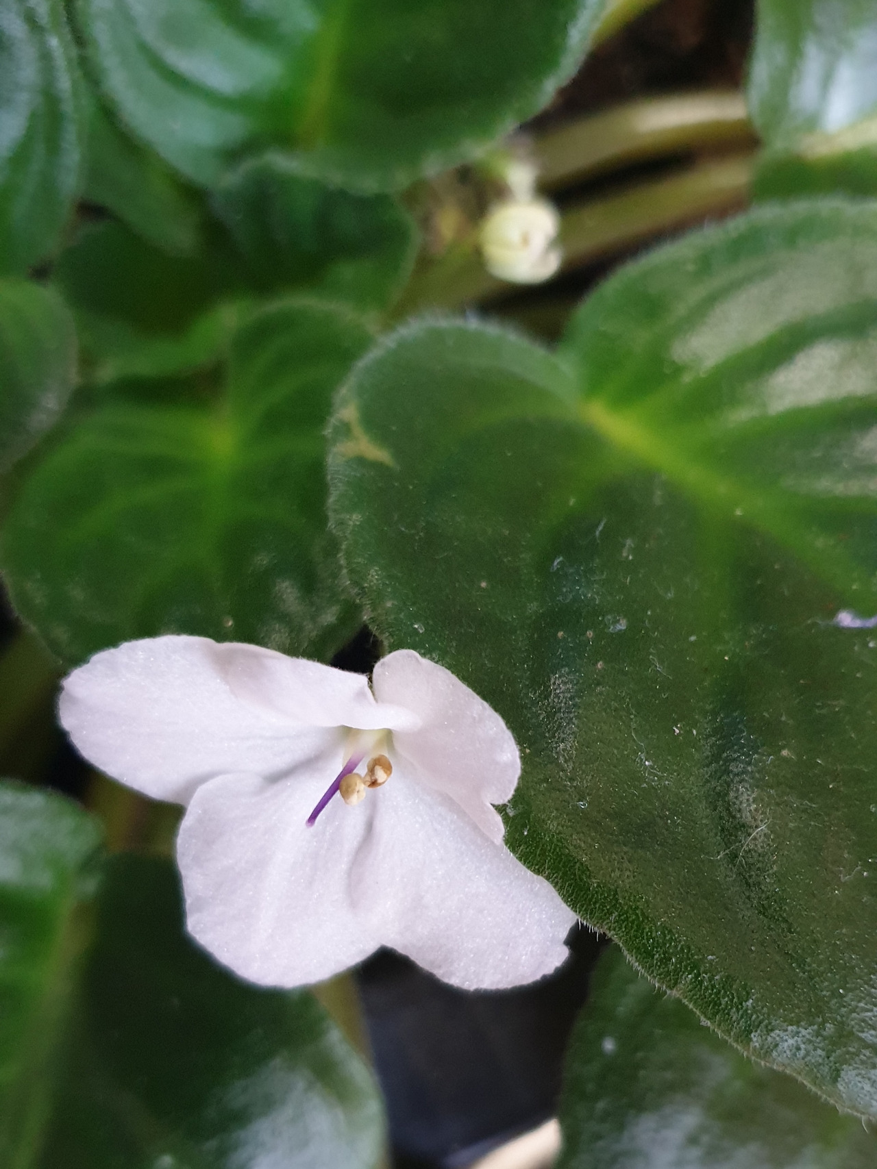 겨울 바이올렛이 흰꽃을 피웠다