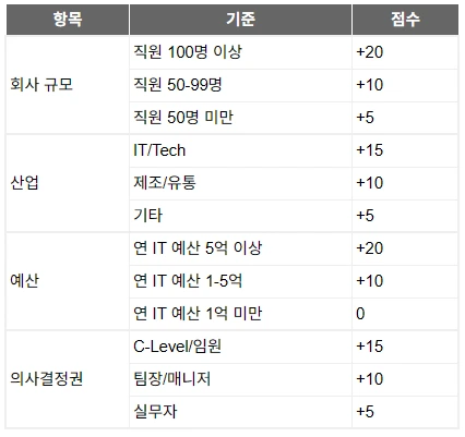 1. Fit Score (적합도 점수): "이 리드가 우리 ICP에 얼마나 맞나?"