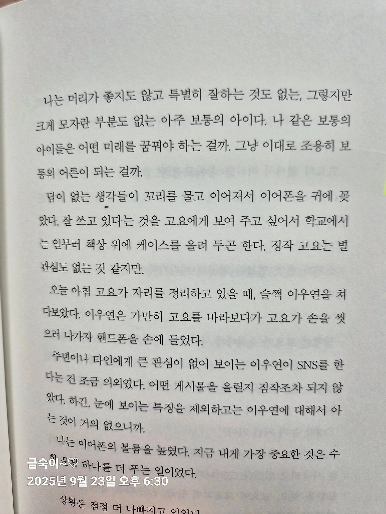 그러다 ㄱ개서도 눈물이 나는 ㄱ굼을 ㄱ구었고, 그 꿈에 나온 아이가 앞자리에 앉은 정후를 보다 보면 보이는 연우라는 것을 알게 된다. 그 뒤로 계속 연우가 궁금하다.