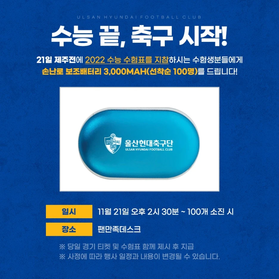이길수 있었던 상황이었습니다. 또한번의 아챔 기억이 재현되나 했는데 역으로 결과가 나왔네요.트레블의 팀이라고 생각했던 팀이 하나의 트로피도 가져갈 수 없을 것 같은 위기에 놓였습니다. 6경기째 실점을 하고 있는 (아시아챔피언스리그 포함) 울산의 클린시트의 마지막은 10/17일 수원FC경기였습니다. 매경기 꾸준하게 실점을 하고 있는 모습은 호랑이의 모습과는 거리가 멀어보이죠. 전북과의 중요한 경기에서도 3실점하면서, 그것도 버저비터 골로 먹힌 건 너무나 치명적이었습니다. 일단 무조건 이기고 상대를 봐야되는 상황이 되었습니다. 다행히 올해 제주를 상대로 지지는 않았습니다만 2무가 전부라. 그리고 파이널라운드에만 만나면 울산을 심심치 않게 잡았던 제주이기에 (파이널라운드에서만 3승 1무 제주 우세) 다소 열세가 예상된다는 평가가 될 수 있지만 그게 중요한게 아니죠. 성난 홈 팬들을 위해 수험생 이벤트도 준비했지만 지금 필요한 건 승입니다. 대승이 되면 더더욱 좋구요.