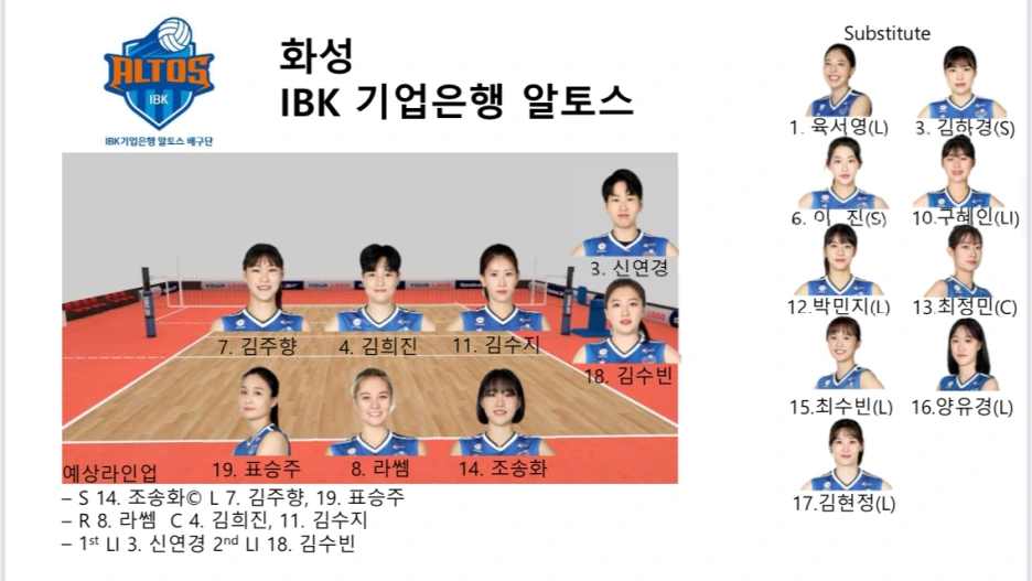 대구시청에서 뛰던 최수빈 선수가 복귀했고 두명의 레프트 자원을 신인으로 선발하면서 전력을 강화했습니다. 특히 최수빈 선수의 복귀는 서브와 리베로까지 커버할 수 있는 부분이 많기에 좋은 자원이라는 생각입니다. 기업은행은 라인업의 큰 변화는 없을 것으로 보입니다. 안나 라자레바가 교체된 레베카 라쎔을 빼고는 별도의 큰 라인업 변화는 보이지 않습니다.