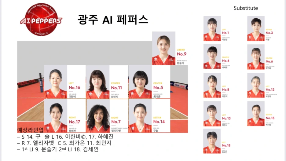 7구단체제 속 첫번째 경기를 치르는 페퍼스는 보상선수로 지민경 하혜진 이한비 선수 등 각 구단에서 전력에서 보탬이 쏠쏠한 선수들을 많이 보강했다는 평이 많아졌습니다. 지민경 선수는 전 소속팀과 개막전이군요. 이게 신생팀에 메리트가 될 수 있습니다. 다시 시작하는 기분과 동기 부여는 중요하죠. 그래서 흥국생명과 같은 선상에 위치한다고 생각해도 무관할 정도의 로스터 현황을 보여줍니다. 특히 신인 드래프트에서도 리베로 자원의 부족을 지원할 베테랑 신인 문슬기 선수를 지명하면서 더욱 탄탄해졌습니다. 신인 선수도 평이 좋습니다. 1순위의 박사랑 선수를 비롯한 센터 서채원, 박연화 선수도 돋보일 수 있는 전력입니다.
