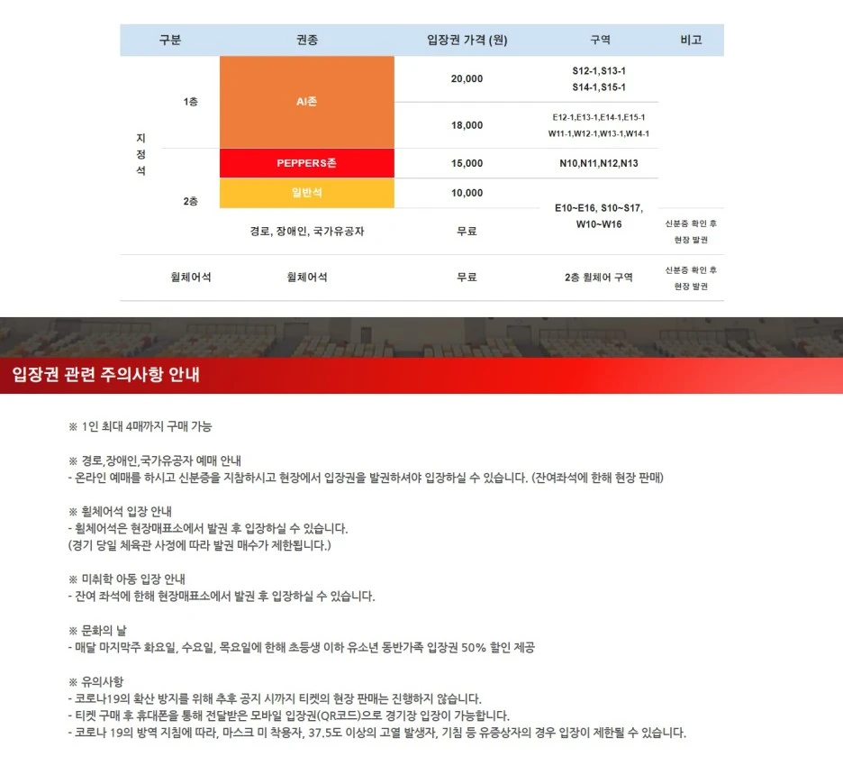 관중 - 유관중 운영예정 (개막전 매진, 온라인 사전예약만 허용)