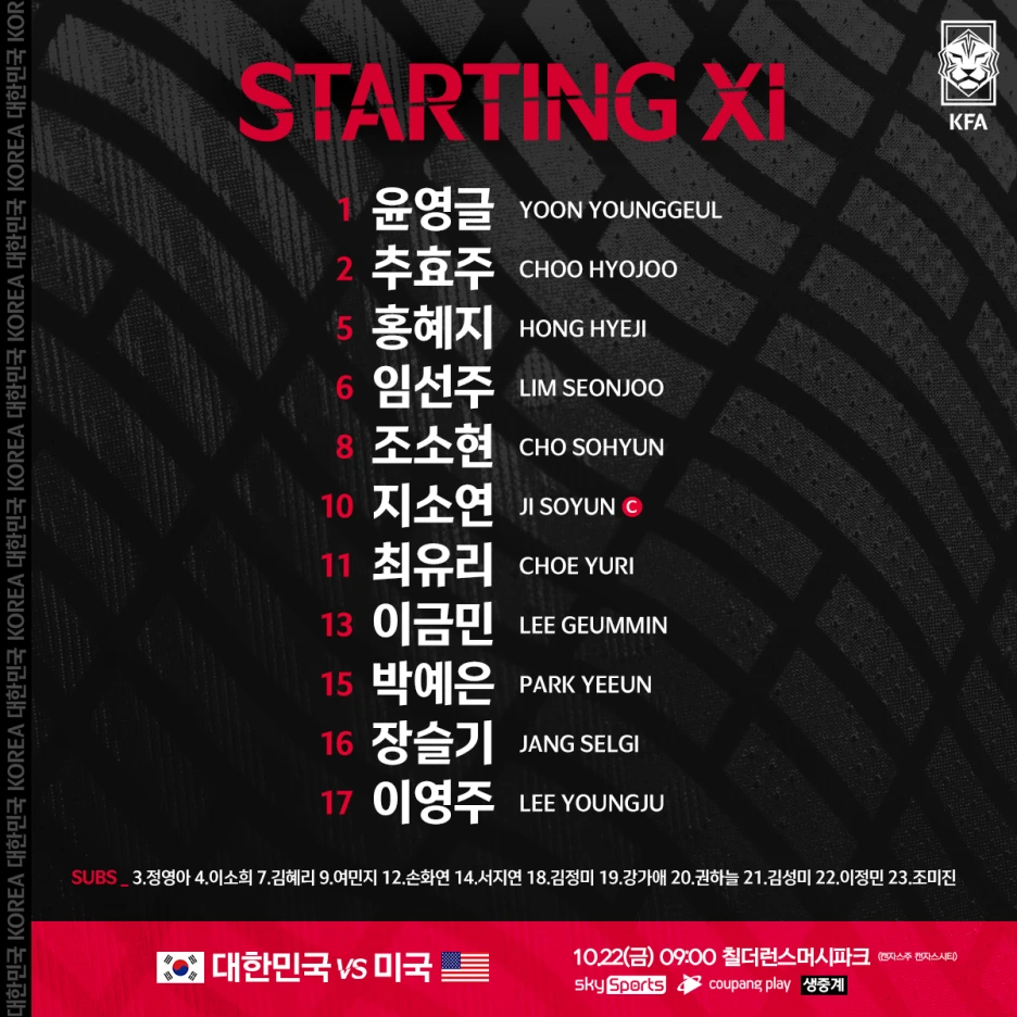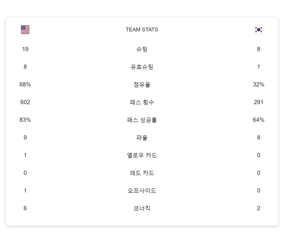미국 0-0 한국 10/22, 09:00