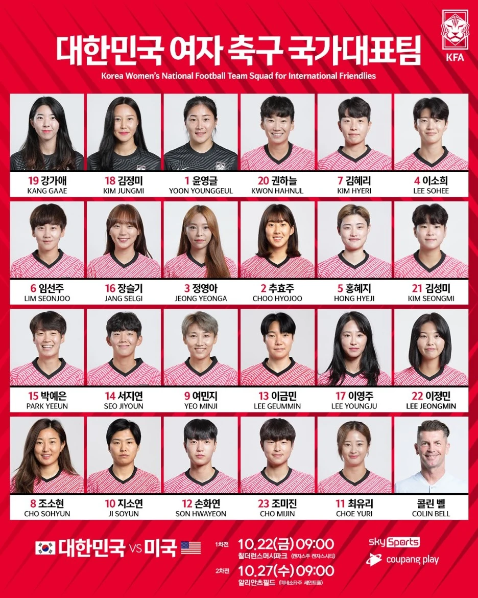 콜린 벨호, 미국과 친선 2연전을 위한 라인업 발표. (brunch.co.kr)