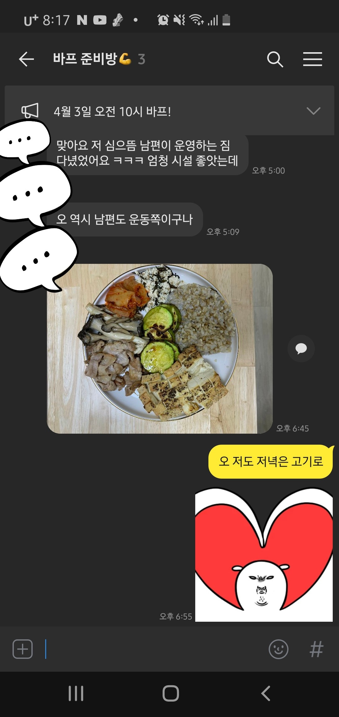 유난히 3명이 모인 단톡 방이 오래간다. 셋이 각자 자기가 하고 싶은 말만 해도 어느 정도 화제가 이어진다. 햇수로 7년째 이어가는 책모임 단톡 방, 그보다 오래된 친구 셋 단톡 방, 회사에서 만난 친한 지인과의 단톡 방도 3인이다. 마지막으로 가장 최근에 생긴 단톡 방이 바로 이 ‘바프방’ 지난해부터 버킷리스트로만 품고 있던 바디 프로필 준비방 이야기를 해보려고 한다.