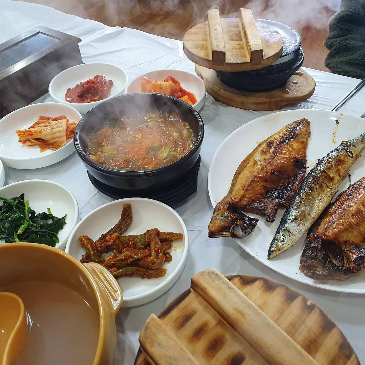 명색이 휴가인데, 식단은 일반식을 건강하게 먹기로 했다. 하조대 식당에서 생선구이돌솥밥 정식을 시켜 게눈 감추듯 먹었다. 구운 고등어와 삼치, 꽁치 한 마리씩을 싹싹 비웠다. 밥은 절반만 먹고 나물 반찬 위주로 배를 채웠다. 고소한 생선살은 씹으면 씹을수록 단맛이 났다. 단백질은 닭가슴살만 있는게 아니고 연어나 흰살생선살을 먹기도 하는데 다양한 식단에 도전해봐야겠다는 생각을 했다.