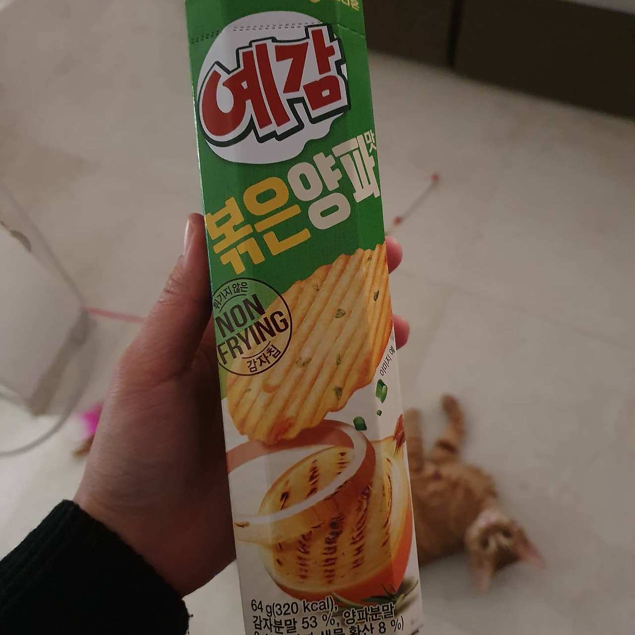 눈이 한창 내리는 저녁, 샐러드를 먹고 마트에 장을 보러 갔다가 과자 하나를 사왔다. 튀기지 않고 구운 감자, '예감'. 양파가 들어간 과자를 정말 정말 좋아하는 내가 얼마 만에 과자를 입에 넣은지 모르겠다.한 봉지에 130칼로리, 높지는 않지만 오늘 하루 잘 지켜온 식단에 흠이 생기는 것 같아 아쉽기도 했다. 하지만 정말 맛이 있었으니, 내일 좀 더 열심히 운동하는 걸로 만회해보려고 한다.