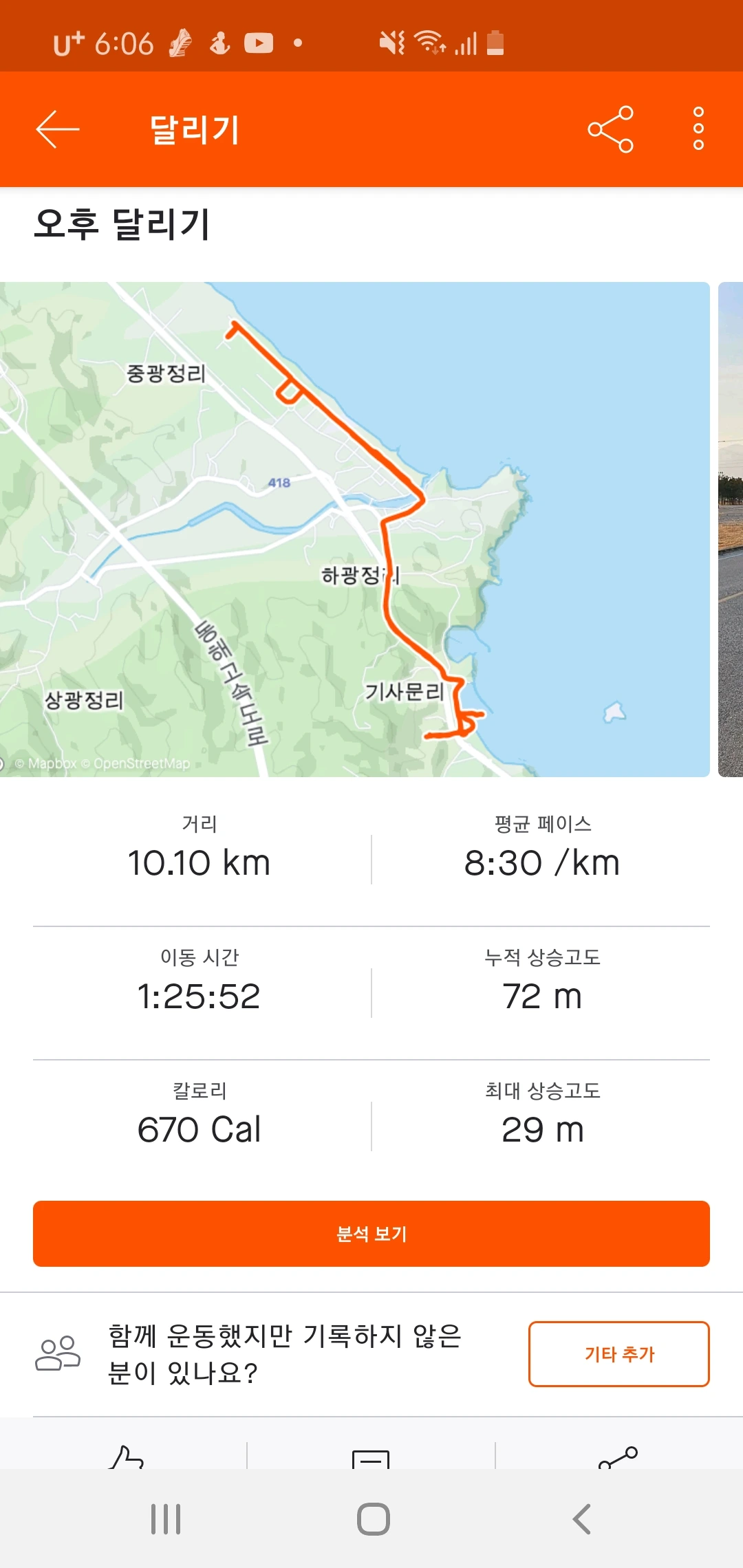 식사 후 두어 시간이 지나도록 배가 꺼지지 않았다. 평소보다 많은 양의 음식이 들어와서 인지 가스가 차기 시작했다. 소화도 시킬 겸 이어폰을 끼고 해안가를 달리기 시작했다. 2주 전에 8키로 정도 뛰었던 길인데 오늘은 조금 욕심을 내서 10키로를 채워보기로 했다. 바닷가를 찾은 관광객과 캠핑러들 사이를 한창 달리다보니 한시간이 훌쩍 지났다. 열심히 달려 낮에 먹은 백숙 한 그릇 만큼의 칼로리는 다 태운 것 같았다.
