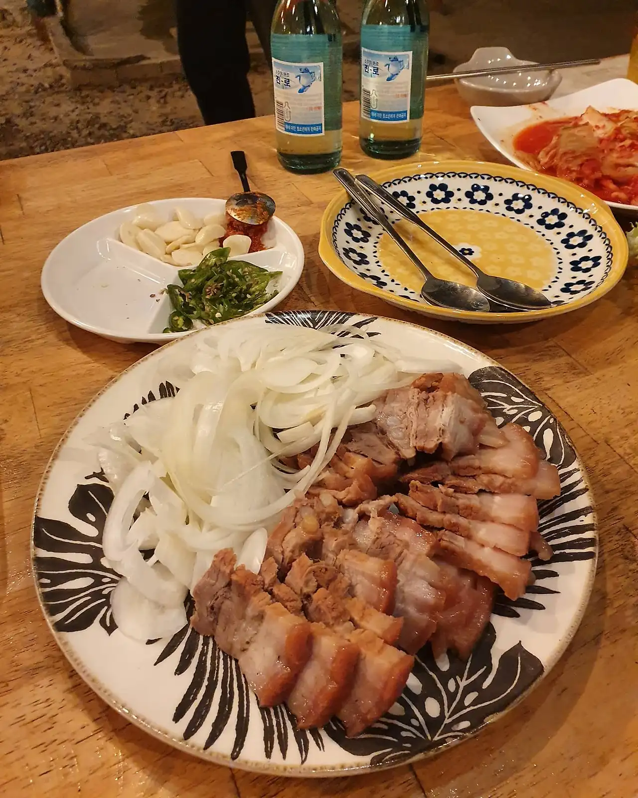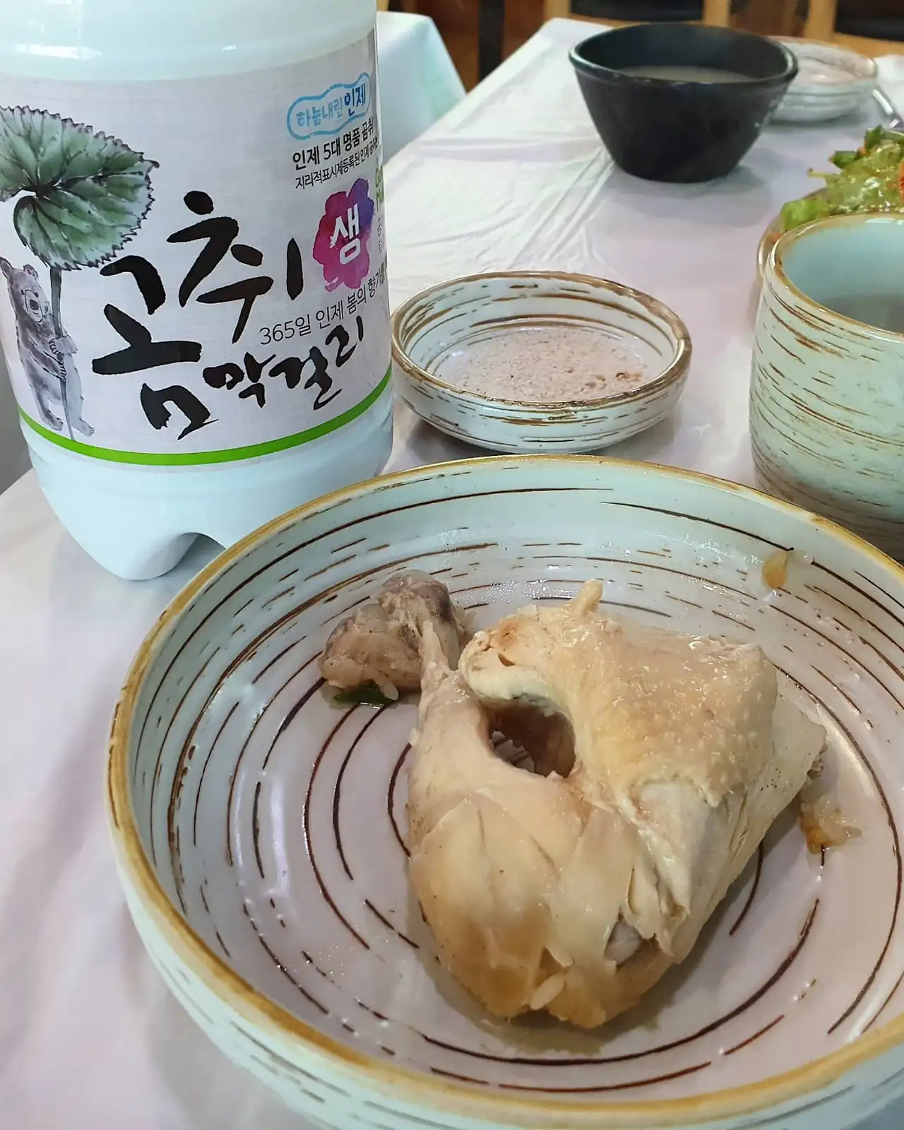 오늘은 좀 더 먹자. 오전에 서핑 한 시간을 하고 나서 든든한 걸 먹어주기로 했다. 치팅은 더 이상 없다고 했지만 몸이 곯아가는 건 원치 않는다. 잘 먹어주고 운동도 잘해주면 되지. 어지러워서 바닥과 침대에 드러눕는 날 보고 남편도 걱정을 하기 시작했다. 피자와 부대찌개, 닭백숙의 선택지가 있었는데 가장 기운이 날 것 같은 메뉴를 골랐고, 양양 맛집을 검색해 찾아간 식당은 감사하게도 찐맛집이었다.