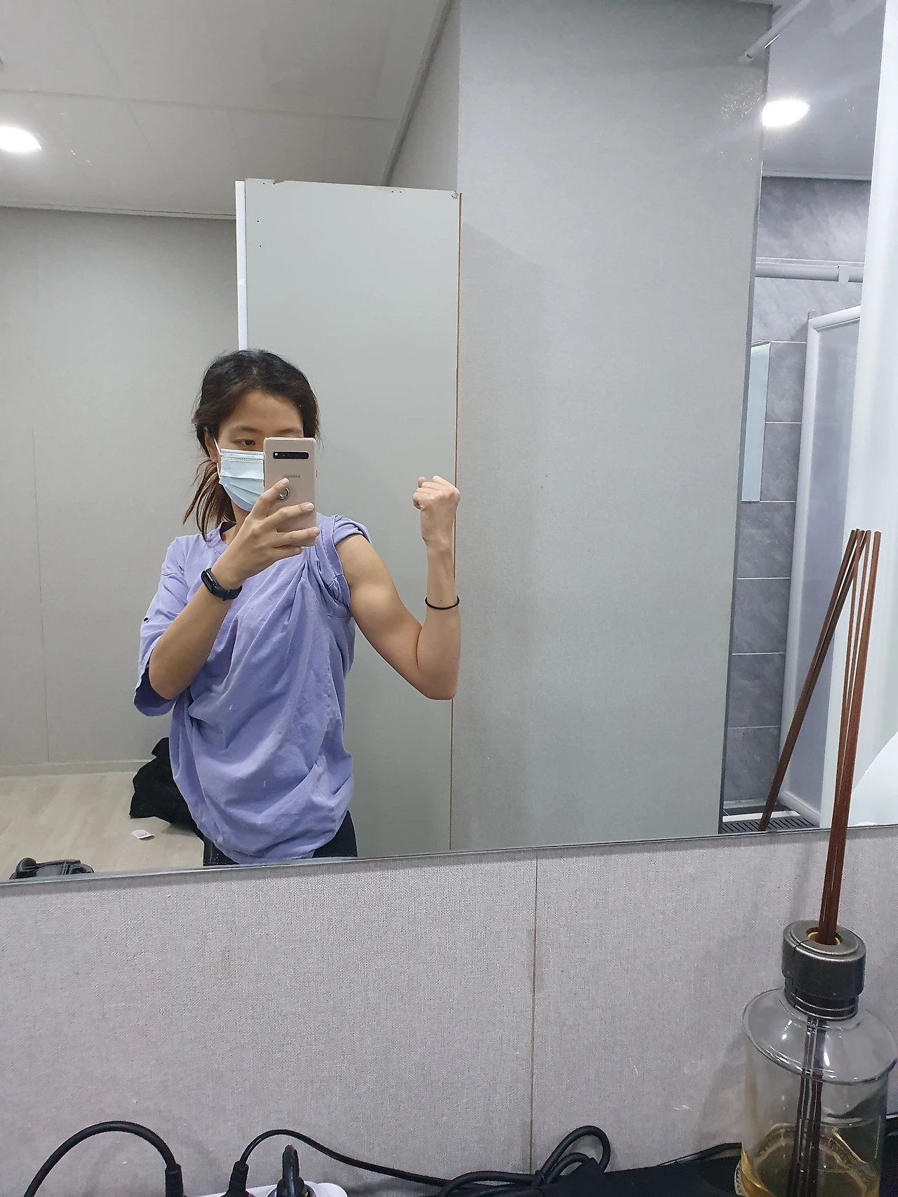 설명을 많이 들어도 아직 자극이 오는 느낌은 크지 않다. 수업이 없는 날 개인운동을 얼마나 열심히 하느냐에 따라 숙련도가 달라진다고 한다. 일단 자세를 제대로 익혀야 그 다음 무게를 올려가며 근육을 만들어갈 수 있다. 만날 복싱으로 뻗기만 하던 팔과 어깨를 다른 방식으로 쓰는 게 쉽지는 않았다. 머리에 버퍼링이 걸려 고치라고 하는 부분을 까먹고 또 팔이 굽거나 허리가 휘어지기 마련이었다.