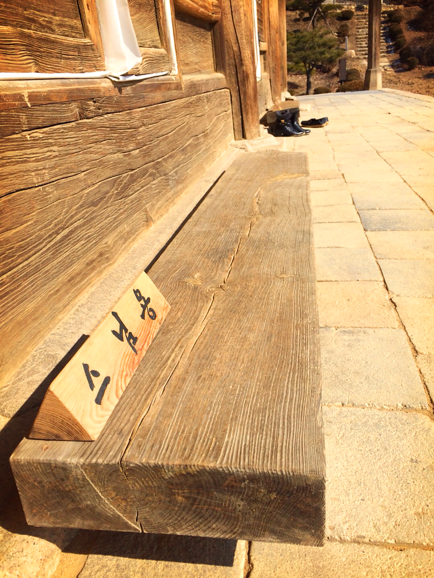 으레 '유적지는 출입금지'라는 생각이 있어서인지 무량수전 안에 들어가 볼 수 있다는 생각을 하지 못했다. 그런데 건물 앞에 신발이 몇 켤레 놓여 있었다. '스님용', '신도용' 올라오면서 봤던 안내 표지판과 같은 꾸밈없는 글씨체로 적힌 나무 도막이 세워져 있었다. 신기한 것은 절 안에서 '카톡' '카톡' 하는 알림 음 소리가 흘러나오는 것이었다. 안에 누군가 있기는 있나 보다. 절 근처를 뱅뱅 돌기만 하다가 결국 마음먹고 문고리를 잡았다. 삐그덕 삐그덕 조금 뻑뻑하게 문이 열렸다. 그 안은 언젠가 가본 적 있는 사찰들의 경내와 같은 모습이었다. 왼쪽 한 편에 커다란 불상이 앉아 있고, 사람들이 방석을 끌어다 앉아서는 기도 중이었다. 절을 관리하는 사람처럼 보이는 아주머니께서 급한 연락을 받고 계신지 카톡과 전화를 번갈아 받고 계셨다. 나 역시 익숙한 척 방석을 한 장 끌어다가 자리를 잡고 앉았다. 교회에서는 어떻게 하는지 대충 알고 있는데 절에서는 뭘 어떤 식으로 하는지 감을 잡을 수 없었다. 그래서 다른 사람들이 어떻게 하는가 조용히 지켜보기로 했다.