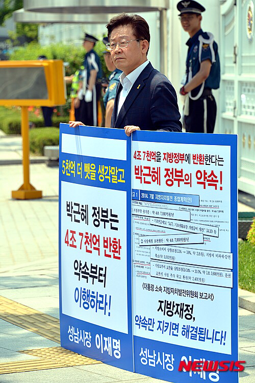 정부가 지난 4월 발표한 지방재정제도 개편을 둘러싼 공방이 치열하다. 이재명 성남시 시장을 비롯한 6개의 불교부단체(국가로부터 재정보전을 받지 않는 지자체) 대표들은 이번 개편을 "실험적인 정책들을 추진해온 일부 자치단체를 손보려는 보복성 정책"이라 비난했다. 중앙 정부는 재정 자립도가 높은 지역에 배당되는 지원금을 보다 어려운 지역에 배분해야 한다는 '공정성'을 근거로 이들 6개 단체에게 전달되어야 할 5000억 규모의 교부금을 지급하지 않겠다는 입장이다.