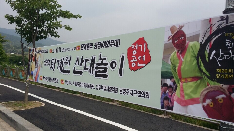 오늘날의 놀이꾼은 연초 가공업 대신 공사 현장에 케이블을 설치하는 일을 한다. 내가 만나본 퇴계원 산대놀이 전승자들은 주중에는 각자의 본업에 충실했다가 주말이면 연습실에 모여 오래된 지역전통의 춤사위를 익히는데 구슬땀을 흘린다. 1년에 한번 돌아오는 정기공연을 위해 4계절 내내 높은 강도의 연습을 십수년간 계속해 오고 있었다. 지역 주민들은 이들의 무대를 위해 직접 파전을 부치고, 현수막을 내걸며 자신이 지역 공동체에 속해 있음을 확인하는 기회를 갖는다.