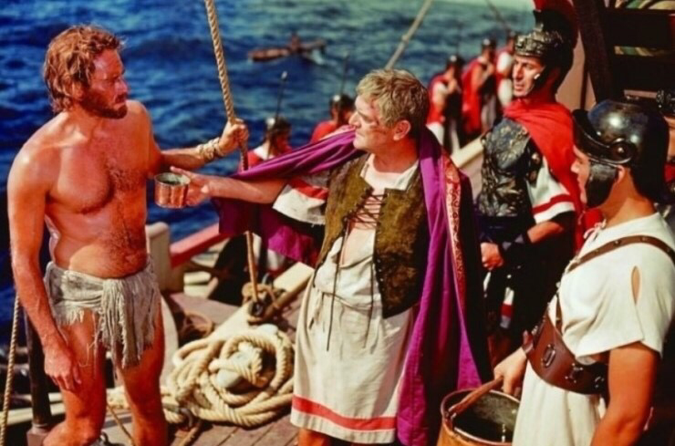 하지만 왕자였던 그가 짐승처럼 수년간 노를 저으면서도, 내일을 기대하며 살았다. 사실 벤허를 살게 한 것은 증오와 분노였다. "저는 이 배를 나갈 겁니다. 신께서 저를 이대로 죽게 하려고 3년 동안 노예로 살게 하진 않으셨을 겁니다" 그의 눈에 서린 증오의 힘을 알아본 로마인 사령관은 그를 자유롭게 풀어주었고, 벤허가 지금껏 살아남게 된 것은 이유가 없어 보였다. 본인 스스로도 무엇 때문에 자신이 위기 상황에서도 거듭 풀려나게 되는지 이해할 수 없었다. 하지만 그에게는 어떤 이유에서든 자신에게 '내일'이 찾아올 것이라는 강한 확신이 있었다. 그의 눈빛은 자신에게 명령을 내리는 사령관 앞에서도 흐려질 줄 몰랐다. 함선의 시커먼 바닥과. 그보다 더 검게 그을린 피부에 명령에 따라 온몸에서 땀을 흘리며 노를 젓는 벤허의 모습은, 비참했다. 하지만 자신에게 명령을 내리는 자를 향해 고정된 두 눈은 마지막까지 형형한 빛을 냈다. 41번으로 불렸지만 그는 벤허였다. 그를 시험해 보려 괜히 채찍질을 하는 인물이 등장한다. 벤허는 순간 으르렁거리며 일어섰다 다시 자리에앉는다. 아직 반항할 증오의 찌꺼기가 남아있지만 그것을 억누를 수 있는 이성도 함께 가지고 있다고 그를 높이 평가했다. 많은 장면들이 기억에 남지만, 어두운 함선 바닥에서 기약도 없이 수백일간 노를 젓는 노예의 삶을 살았던 그가 독기를 품은 눈빛을 보여주는 장면이 가장 인상 깊었다.