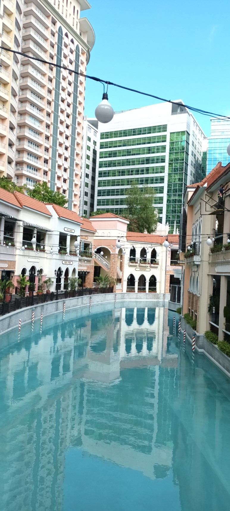 이른 시간인지라 인공 수로에 곤돌라 보트는 떠다니지 않는다.