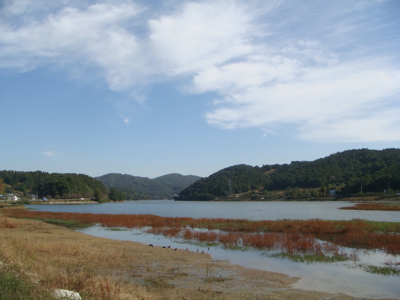 시골스러운 저수지 지나