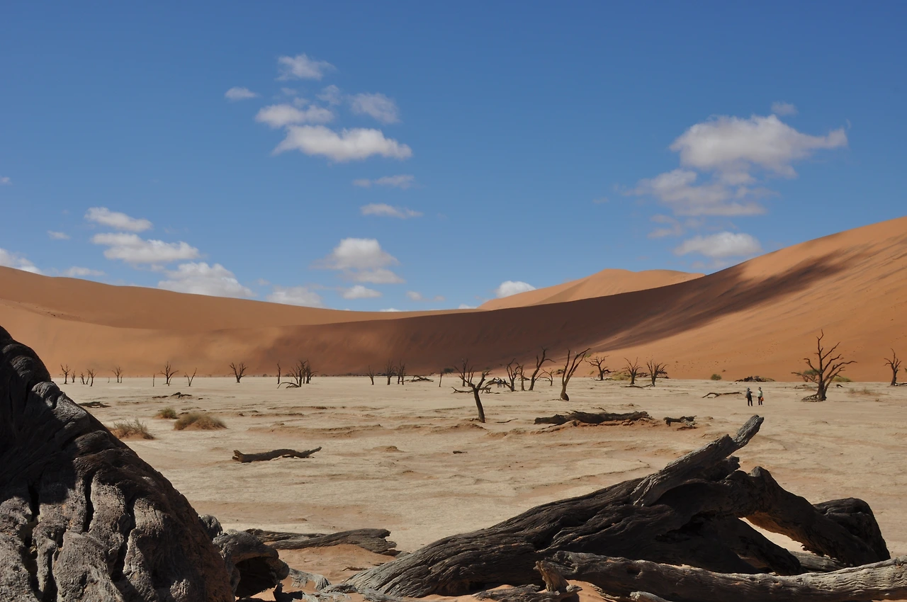 작은 모래가 대서양과 인도양에서 불어오는 바람을 타고 형형색색 모양을 만들어 거대한 산봉우리가 되기도 하고, 자그마한 언덕이 되어 아름다운 사막을 만들었다. 세계의 많은 사람들이 멀지만 이곳을 찾는 이유이다. 푹신 거리는 모래를 밟으며 가끔 만나는 나무 밑에 들어가 땀을 씻어 준다. 다시 걸으며 만나는 사막은 또다시 새롭기만 한다. 한참을 걸어 다리가 아플 때쯤 차량을 만났다. 트럭을 개조하여 햇살만 가리도록 덮개를 하고 의자를 설치했지만 그렇게 고마울 수가 없다. 잠깐의 기다림 속에 도착한 곳에서 데드 블레이가 보인다. 모두는 힘이 들지만 저 멀리 있는 데드 블레이(Dead Vlei)를 향해 꾸역꾸역 걸음을 옮겨 놓는다. 더위에 힘에 겹다.
