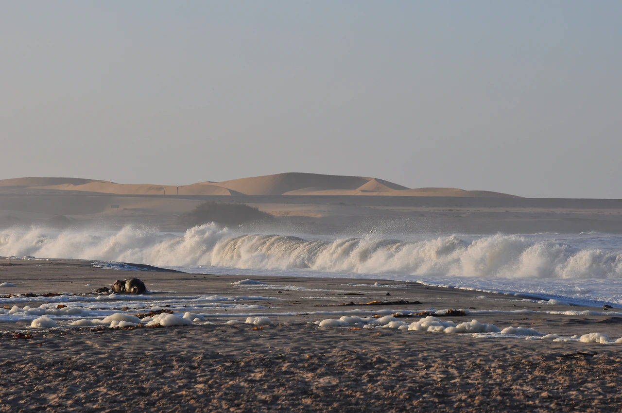 스와콥문트 앞에는 푸르른 대서양이 펼쳐지고 뒤쪽으로는 나미비아 사막이 펼쳐진다. 바다와 사막이 만나는 환상적인 그림을 선사해 주는 곳이다. 숙소를 정하고 난 오후, 바이크를 타고 사막투어를 나섰다. 아름다운 사막을 만났으니 어떻게 생겼는지 봐야 할 것 아닌가?