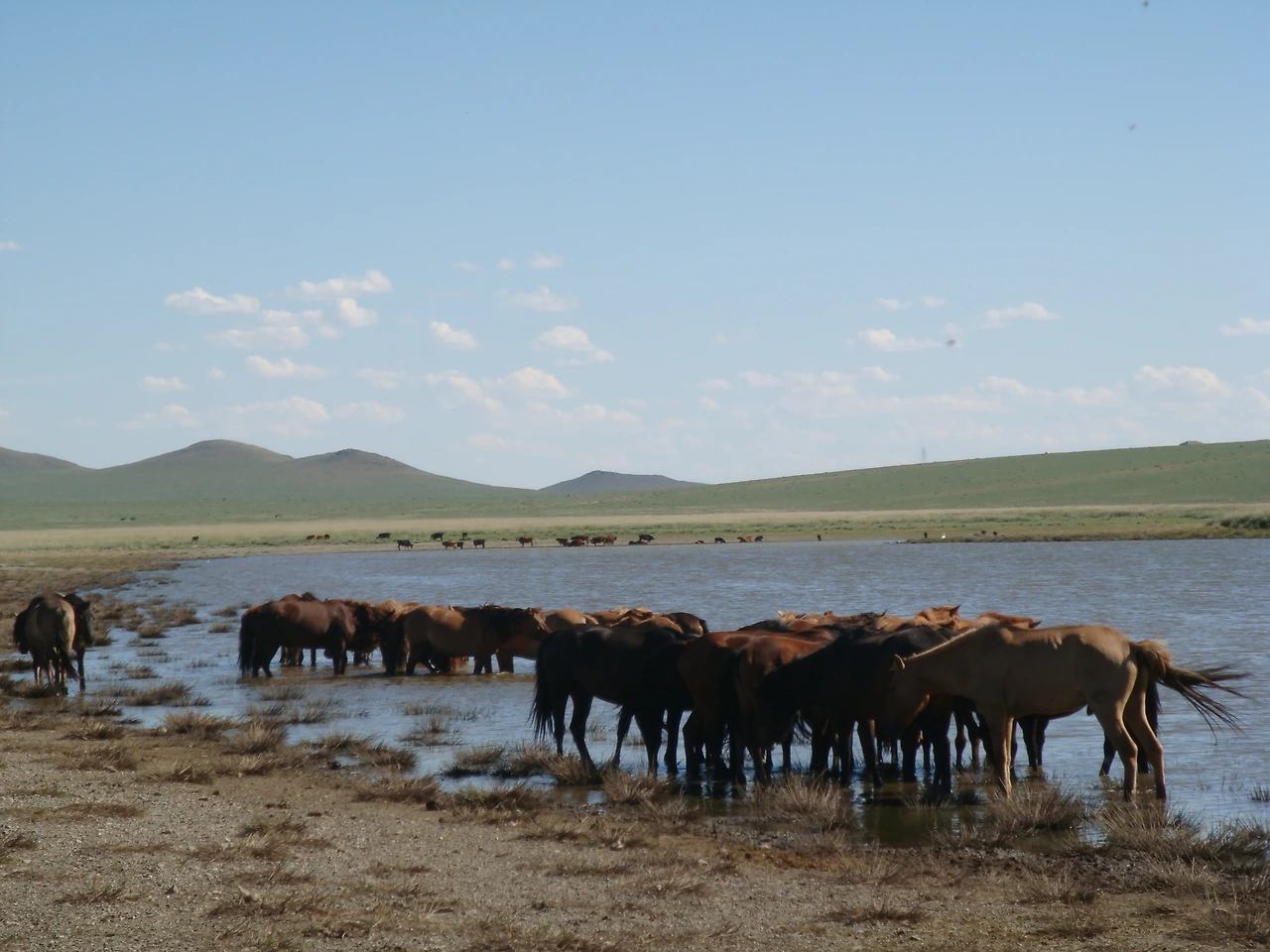 따사로운 햇살 속에 감사한 마음으로 아침을 먹고 9시경에 바얀작으로 출발했다. 사막을 질주하던 중 양 떼들이 쉬어 가는 오아시스를 만났다. 수십 마리의 양 떼들에게 물을 먹이기 위해 설치해 놓은 우물이다. 우리와 같은 두레박으로 물을 길어 양 떼들에게 준다. 사막을 헤매던 수십 마리의 양들은 머리를 맞대고 단숨에 물을 들이켠다. 나무 한 포기 없는 사막에서도 사람과 양들이 같이 살아가는 방법이 있었다. 서로가 어울려 살 수 있는 방법을 찾은 인간의 삶의 방식은 신비롭기까지 했다.